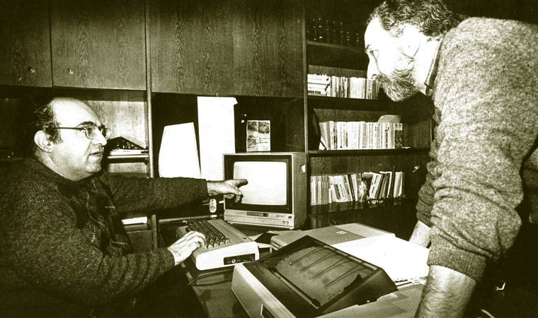 Benim bildiğim bilgisayar kullanan ilk gazeteci. Teknolojiyle arası tahmin ediyorum iyiydi. Benim hiç iyi olmadığı için tahmin ediyorum, dedim... İşte fotoğraf (birlikte fotoğraflarını göstererek) 80’li yıllar, bilgisayar var...