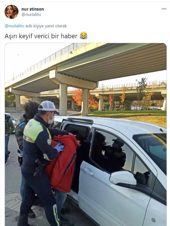 "nur stinson" kullanıcı hesabına sahip genç kadının paylaşımı sosyal medyada büyük tepki toplayınca zanlı poliler tarafından yakalandı. Tacize uğrayan kadın yakalanma görüntüsünü, "Aşırı keyif verici bir haber" mesajıyla paylaştı.