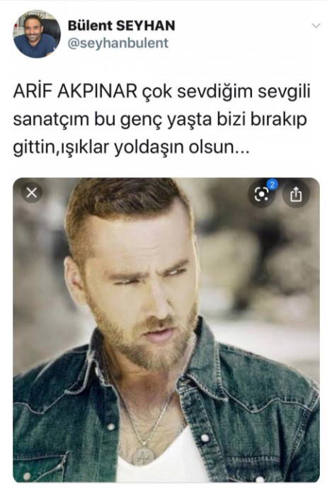 Twitter hesabından acı haberi duyuran yapımcı Bülent Seyhan, şu ifadeleri kullandı: "ARİF AKPINAR çok sevdiğim sevgili sanatçım bu genç yaşta bizi bırakıp gittin, ışıklar yoldaşın olsun... "