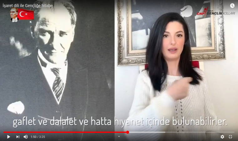 CHP Gemlik İlçe Başkanı Ümit Balta, sokağa çıkma yasağını nedeniyle herkesin evde kaldığı bugünlerde ülkenin tüm gençlerinin memleketin geleceğinde gerçek söz sahipleri olduğunu belirterek,"Büyük Önder Mustafa Kemal Atatürk’ün bizlere 1927 yılında emanet ettiği hitabeyi, işaret dili bilmemelerine rağmen, Gemlik gençlik kolumuzun öncülüğünde, il-ilçe gençlik kolu başkanlıklarımız ve meclis üyelerimiz ile toplumun tüm kesimlerine hitap etmek maksadıyla seslendirerek böyle bir video hazırladık" dedi.
