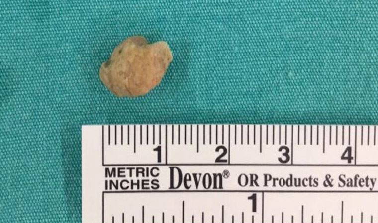 Ameliyatı gerçekleştiren Doç. Dr. Muhammed Fatih Evcimik, "Nurten Hanım’ın boynunda elle gerçekleştirdiğimiz ilk muayenede taş hissi aldık. Taş maalesef çok büyüktü ve bunu muayene sırasında fark ettik. Bunun üzerine ultrasonla bölgeye baktık. Ultrasonda da 1.5 santimetre büyüklüğünde bir taş olduğu gözüktü. Bunu klasik yöntemlerle, kanalı açıp almamız mümkün olmadığından boyun altından bir kesi yaparak taşı çıkardık" değerlendirmesinde bulundu.