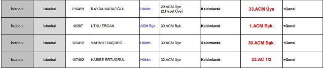 Kararnameye göre, Gezi davasının görüldüğü İstanbul 30. Ağır Ceza Mahkemesi'nin Başkanı hakim Utku Ercan'ın yerine hakim Mahmut Başbuğ atandı.
