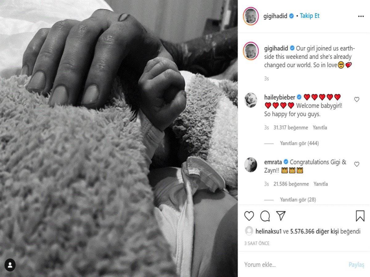 Hadid de Instagram hesabından, "Kızımız bu hafta sonu aramıza katıldı ve çoktan dünyamızı değiştirdi" notunu paylaştı.