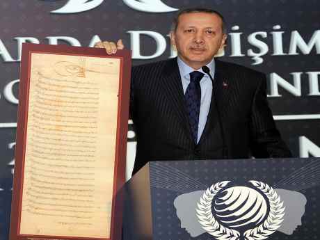 Konuşması sırasında, birde belge açıklamak istediğini dile getiren ve konuşma yaptığı kürsünün altından bir de belge çıkartan Erdoğan, belgenin, işgal altındaki Fransa Kralı François'ya, Kanuni Sultan Süleyman'a gönderdiği mektup olduğunu açıklayarak, metni aynen okudu: