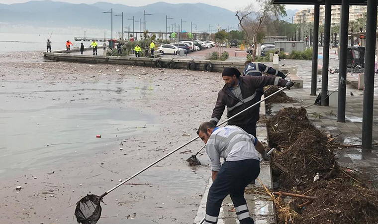 Önceki gece sabaha kadar yağan aşırı yağmurun ardından İzmir Büyükşehir Belediyesi ekipleri kentte yaşamı normale döndürmeye yönelik çalışmalarını sürdürüyor. Suların çekilmesiyle ortaya çıkan çamur, kentin işlek noktalarından temizlenirken hasar tespit çalışmaları da başladı. Büyükşehir Belediyesi ekipleri, bir yıllık yağış miktarının yüzde 18’ini bir gecede alan kentte hayatı normale döndürmek için yoğun çaba harcıyor.