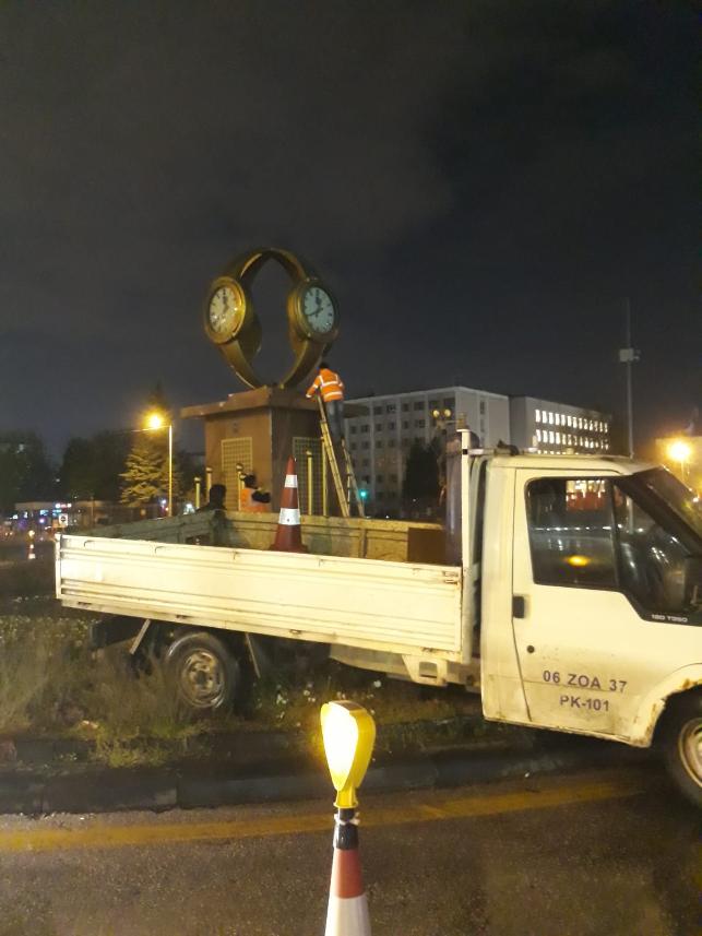 Ankara Büyükşehir Belediye Başkanı Mansur Yavaş'ın talimatı ile Melih Gökçek döneminde TBMM Kavşağı'na konulan kol saati anıtı kaldırıldı.