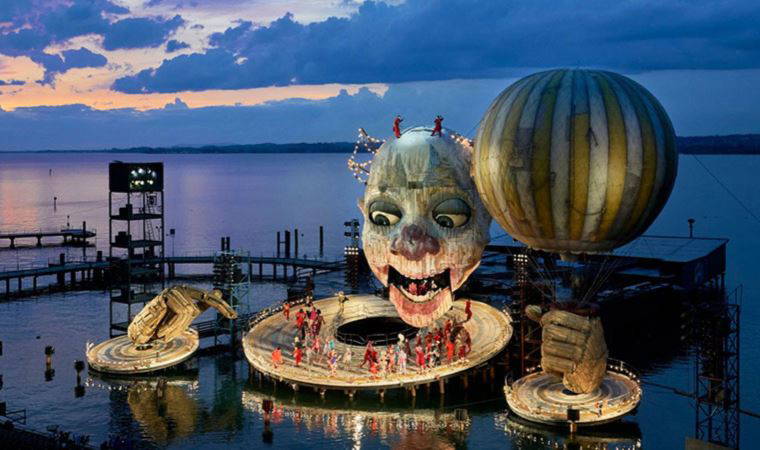Bu yıl Verdi’nin “Rigoletto”su sırada. Dev bir palyaço başı, kimi an oluyor yumuşak bakışları aniden öfkeleniyor, hüzünleniyor, sonra keyifleniyor, gözleri fıldır fıldır dönüyor, canlı yüzün hareketleri bir insan örneği her an değişebiliyor. Hemen yanında duran büyük bir balonun sepeti de sahnenin bir bölümü. Oyuncular balonun içinde, dev palyaçonun gözlerinde, açılıp kapanan iri ağzında da. Verdi’nin duygulandırıcı müziği ile oyun herkesi sürüklüyor. Ötelerde İsviçre’nin dorukları, karlı dağları. “München” arkasında köpükler bırakarak hızla ilerliyor. Ötelerden bir trenin düdük sesi duyuluyor. Güneş batmaya hazırlanıyor. Çok uzakta, gölün öteki ucunda, pusların ardında Konstanz. Yarın da yolculuk oralara ve daha ötelere. İsviçre’ye, Zürih’e.