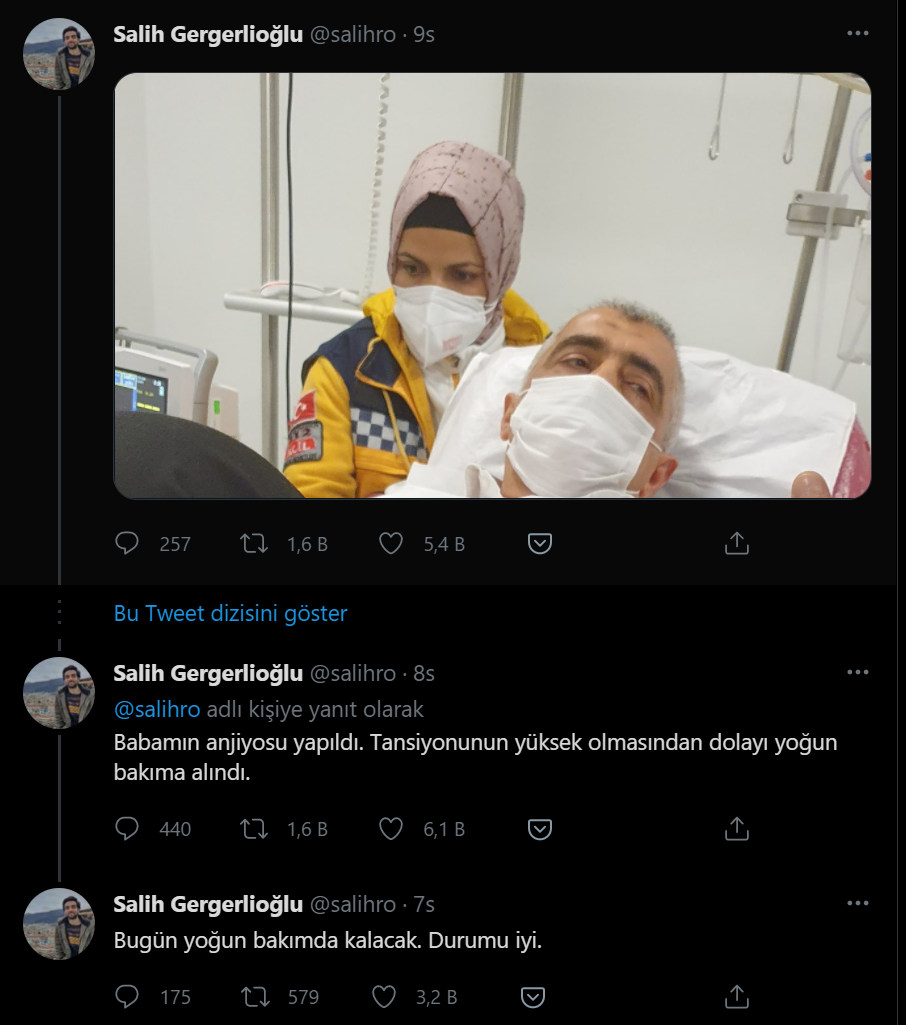 Durumu sosyal medya hesabından paylaşan Gergerlioğlu'nun oğlu Salih Gergerlioğlu, "Babamın anjiyosu yapıldı. Tansiyonunun yüksek olmasından dolayı yoğun bakıma alındı. Bugün yoğun bakımda kalacak. Durumu iyi" dedi.