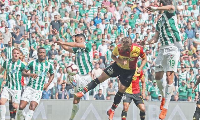 Göztepe 33. haftada deplasmanda olmasına karşın Bursaspor karşısında yoğun stres ve baskı altında 33 bin seyirci önünde oynanan maçta galibiyeti kaçıran taraf oldu. İlkyarıdaki her iki takımın da temkinli ve kontrollü oyunu yerini ikinci yarıda daha tempolu ve karşılıklı ataklarla geçen bir maça bıraktı. Topu ayağında tutan daha çok ev sahibi takım olsa da kanat organizasyonları ve defans arkasına atılan uzun toplarla Göztepe daha çok tehlikeli olan taraftı. 50’de Jerome’un ceza alanında indirildiği pozisyonda hakem tereddütsüz beyaz noktayı gösterdi ama hangi kartı çıkaracağı hususunda tereddüt gösterdi ve sarı karta karar verdi. Bu duruma Göztepeli oyuncular uzun süre itiraz etti. Yerden yavaş bir vuruş yapan Deniz’in penaltı vuruşunu kaleci Okan iki hamlede almayı başarınca Göztepe öne geçme şansını kaybederek fırsat tepti. Orta hakem Mete Kalkavan 11’de Alpaslan’ın yan yana pozisyonda frikikten gelen ortaya nefis kafasıyla kaydettiği golde VAR’a gitti ve gol iptal oldu. Aynı şekilde 72’de Serdar’ın yine yan yana pozisyonda ara pasını çok iyi değerlendirip sağdan kestiği ve Halil’in yerden düzgün bir vuruşla kaydettiği golde de Kalkavan VAR’a gitmeyi tercih etti ve gol yine iptal oldu. Bursaspor’un ikinci yarıda Yusuf ve Tunay hamlesi sonuç getirmedi, ev sahibi takımın atakları dikkatli ve dirençli Göztepe defansına takıldı. Kaptan Beto ve sağ stoper oynayan Alpaslan’ın yıldızlaştığı maçta tribündeki iki bin Göztepe taraftarı da 90 dakika boyunca takımlarını destekledi.