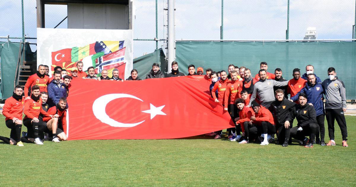 Sivasspor maçının hazırlıklarını Urla Adnan Süvari Tesisleri'nde sürdüren Göztepe, 18 Mart Şehitleri Anma Günü ve Çanakkale Deniz Zaferi'ni unutmadı. Tüm Türkiye'de gururla kutlanan zaferin 106'ncı yıl dönümünde Göztepe teknik ekibi, oyuncular ve personel, antrenman öncesi sahada dev Türk bayrağı açarak şehitlerimizi andı. Ardından futbolcular Ünal Karaman yönetiminde taktik idman yaptı.
