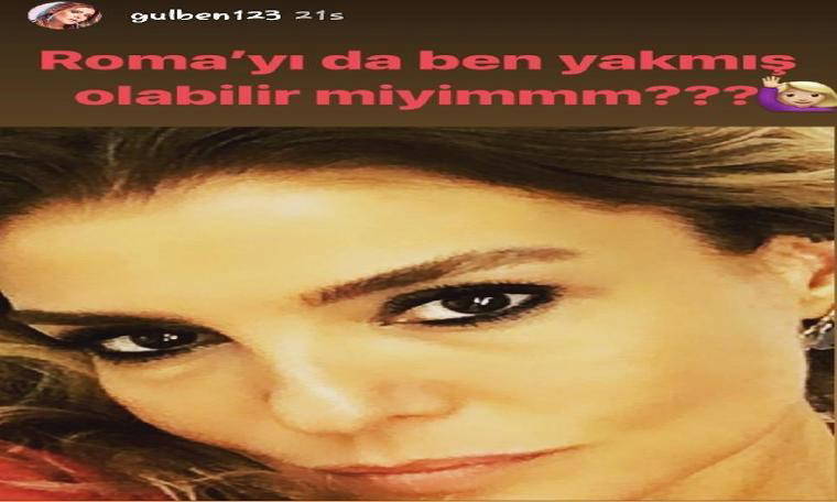 Gürinan Bayramoğlu cinayetinden 10 yıl hapis yatan ve 2015'te tahliye edilen Murat Güneş'in sözlerinin medyaya yansımasının ardından 'azmettirici' iddiasının yeniden gündeme gelmesiyle şarkıcı Gülben Ergen, sosyal paylaşım sitesi Instagram'daki hesabından dikkat çeken paylaşımda bulundu. Ergen, fotoğrafını, üzerine 'Roma'yı da ben yakmış olabilir miyim?' yazarak, paylaştı.