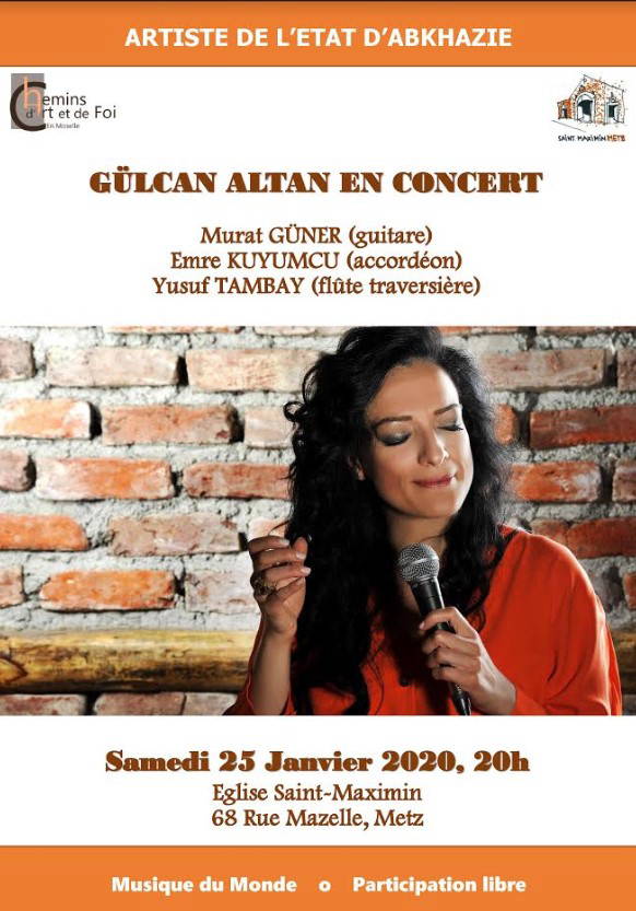 Türlü zorlukların, mücadelelerin yaşandığı hayatta umudun her daim ayakta kalması üzerine kurulu bir anlayışı şarkılarına yansıtan Gülcan Altan köklerinden gelen Kafkas enerjisi ve içinde büyüdüğü Anadolu halklarının özgünlüğü ile Metz'de yer alan ve pek çok uluslararası konsere ev sahipliği yapan Snt-Maximin kilisesinin büyüleyici ve mistik atmosferinde , Adigece, Abhazca, Ubıhça. Türkçe,Ermenice, Kürtçe, İspanyolca, Portekizce, Fransızca, Rusça dillerinde halk şarkıları seslendirecek.