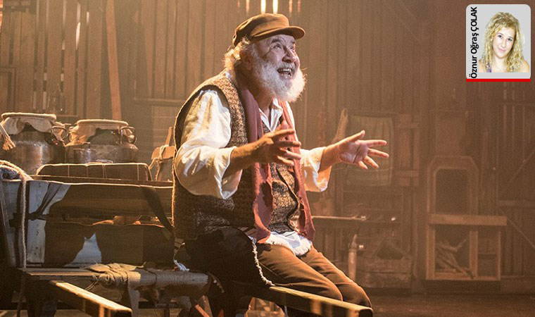 Mehmet Ali Kaptanlar, avuçlarımın içi patlayana kadar ayakta alkışladığım bu büyük oyuncu Tevye karakterini öyle gerçekçi ve doğal oyunuyorki bizi Anatevka’ya alıp götürüyor.