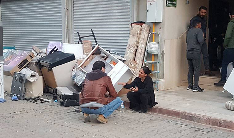 oldu. Kamyona taşınan eşyaları dışarı çıkaran Aygül Doku, sinir krizi geçirdi.
