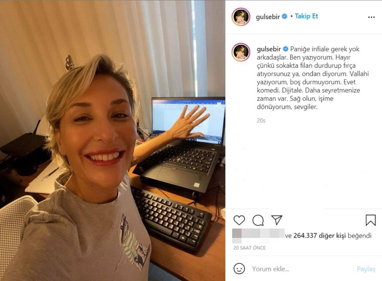 Instagram hesabından bir paylaşımda bulunan Birsel, "Paniğe infiale gerek yok arkadaşlar. Ben yazıyorum. Hayır çünkü sokakta filan durdurup fırça atıyorsunuz ya, ondan diyorum" ifadelerini kullandı.