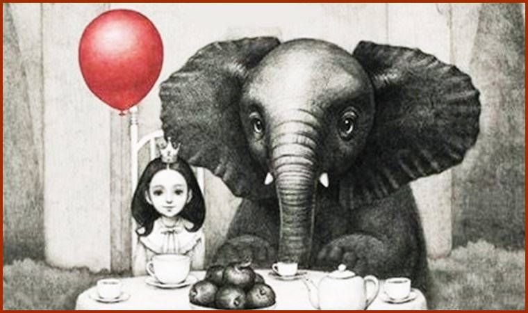 Öykünün, “Aslında anlattığım her şey, şunun hakkında,” diye işaret ettiği ilk cümlesi: “Lea, büyük ve sessiz bir köşkte tek başına yaşıyordu.” Kocaman bir köşk ve istediği her şeye, en çok da o köşkü dolduran kocaman bir sessizliğe sahip olan Lea... Öykücünün, ‘Sessizlik kötüdür’ gibi bir önermesi değil de bu kadar kocaman bir sessizliğe vurgusu var. Resimler de metinle paralel olarak yalnızlık olgusunu hem “monokrom” dünyasıyla hem de imge kullanımıyla sunuyor. Kocaman bir köşkte yaşarken, bir kutuda hisseden, başında tacıyla Lea, Fil’i de kendi dünyasına istiyor. Ne var ki bir arkadaşınızın olmasıyla arkadaşa sahip olmak aynı şey midir? Onu değiştirip kendimize uyumlu hale getirdiğimizde o hâlâ kendisi midir ve mutlu mudur? Başından beri öyküdeki tek renklimiz, “kırmızı balon”. Neyi ifade etmek için orada ya da kendinden başka bir anlama geliyor mu?
