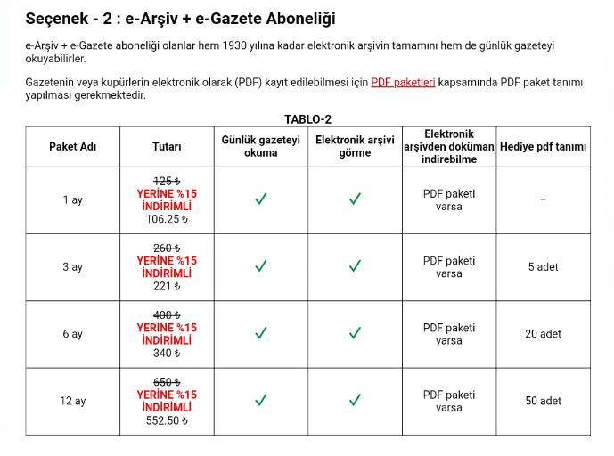 PDF paket alımını e-Arşiv + e-Gazete veya 24 Saat Nostalji tanımı olanlar yapabilir.
