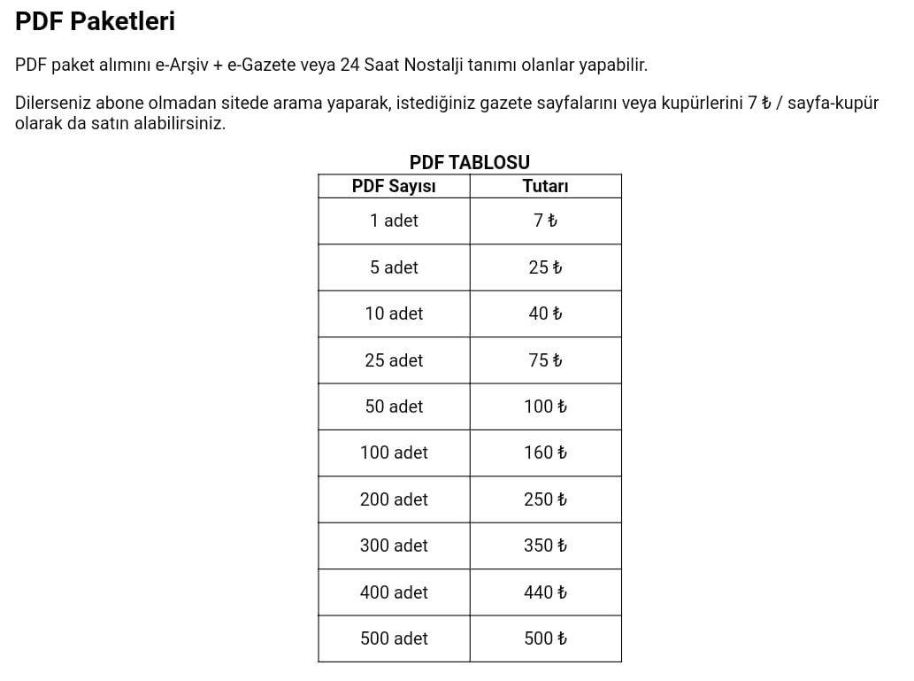 Gazete sayfası veya kupür indirmek için PDF paketleri kapsamında PDF paket tanımı gerekmektedir.