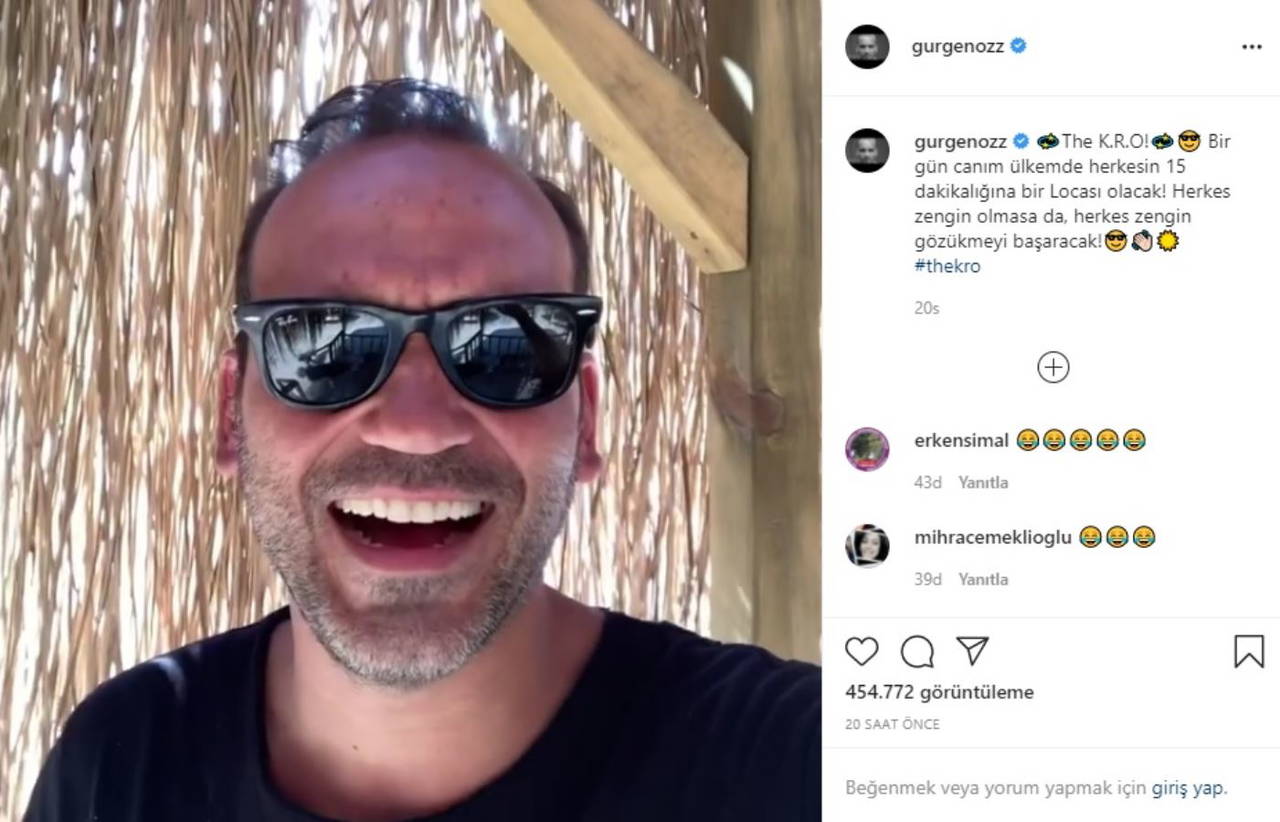 Gürgen Öz çektiği videoyu "Bir gün canım ülkemde herkesin 15 dakikalığına bir locası olacak. Herkes zengin olmasa da, herkes zengin gözükmeyi başaracak" notuyla paylaştı.