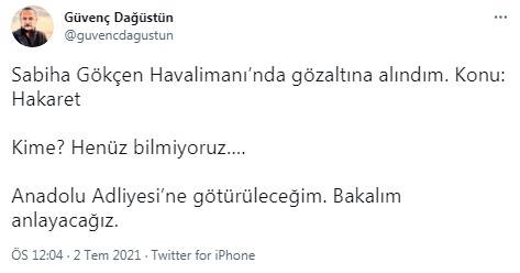 "Sabiha Gökçen Havalimanı’nda gözaltına alındım. Konu: Hakaret