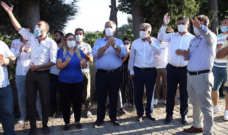 Güzelbahçe’deki go-kart pistine karşı mücadele eden Güzelbahçe Belediye Başkanı Mustafa İnce ve çevrecilere destek veren Karşıyaka Belediye Başkanı Dr. Cemil Tugay da protestolara katıldı. CHP Karşıyaka İlçe Başkanı Serdar Koç, Belediye Meclisi üyeleri ve CHP Karşıyaka Gençlik Kolları ile alana giden Başkan Tugay Tugay “Güzelbahçe’de yeşil bir alanı, asfaltla kaplı go-kart pistine çevirmekle ilgili ısrarla çaba gösteren, merkezi hükümet üzerinden plan değişiklikleri yapan iradeye karşı bölge halkının Güzelbahçe Belediyesi ile birlikte göstermiş olduğu direnişe destek vermek için buradayız. Doğanın ortasında, her zaman sadece ağaçlık olması gereken, belki de tarım alanı olması gereken alan bu alan bir inşaat çalışmasıyla bozulmak isteniyor. Bunu doğru bulmuyoruz. Benzeri şekilde doğayı tahrip eden, yapılaşmaya yol açan her türlü hareketin karşısındayız. Özellikle yöre halkının, bu bölgenin belediyesinin onayı olmadan bunun yapılmasını kamu ahlakına ve hukuka aykırı olarak görüyoruz. Bir yürütmeyi durdurma kararı olmasına rağmen, mühürleme yapılmış olmasına rağmen bugün bu mührü bozarak inşaat yapılmaya çalışılması; ayrıca Güzelbahçe Belediye Başkan Yardımcısı Kazım Çam’ın fiziki saldırıya uğramış olması da çok üzüntü ve endişe vericidir. Tüm bunlara karşı biz de halkın iradesiyle birlikte go-kart pistine hayır diyoruz. Elimizden gelen ne varsa yapacağız” dedi.