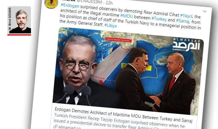 Hafter güçlerinin kontrolündeki sözde Libya Ulusal Ordusuna yakın bir hesap tarafından yapılan paylaşımda, “Erdoğan, Türkiye ile Serrac arasındaki ‘yasadışı’ deniz yetki alanları anlaşmasının mimarı olan Tümamiral Amiral Cihat Yaycı'yı, Türk Deniz Kuvvetleri Kurmay Başkanlığından, Genelkurmay Başkanlığı'ndaki idari bir pozisyona tenzil ederek gözlemcileri şaşırttı” ifadeleri yer aldı.