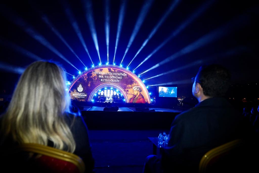 Kılıçdaroğlu’nun konuşmasından sonra Mustafa Demir Hoca’nın okuduğu Kur’an-ı Kerim tilaveti sunuldu. İBB Mehteran Takımı’nın gösterisiyle hareketlenen etkinlikteki heyecan; “drone”, “mapping” ve ışık gösterileriyle doruğa çıktı. Özel olarak programlanan yüzlerce “drone”, 10 dakikalık muhteşem bir multimedya gösterisiyle, Haliç üzerinde görsel şölen yaşattı. 8 farklı noktada; Salacak sahili, Pierre Loti, Beşiktaş Yahya Kemal Parkı Fatih Sultan Mehmet Heykeli, Yedikule, Topkapı, Belgrad Kapı, Rumeli Hisarı ve Sarayburnu Atatürk Anıtı’nda da Haliç’teki gösteriyle eş zamanlı olarak ışık ve ses gösterileri düzenlendi. Pandemi nedeniyle etkinliği canlı izleyemeyen İstanbullular, İBB ve İmamoğlu’nun sosyal medya mecraları üzerinden bu muhteşem görsel şölene, “sanal” olarak tanıklık etti. “Drone”ların gösterisine, 2000 metrekarelik alanı kapsayan ve fethin sembolik anlarını anlatan “mapping” film eşlik etti. Görsel şölenin ardından sahne alan 76 kişilik İskender Paydaş Orkestrası, fethe özel bestelenen marşı icra etti.