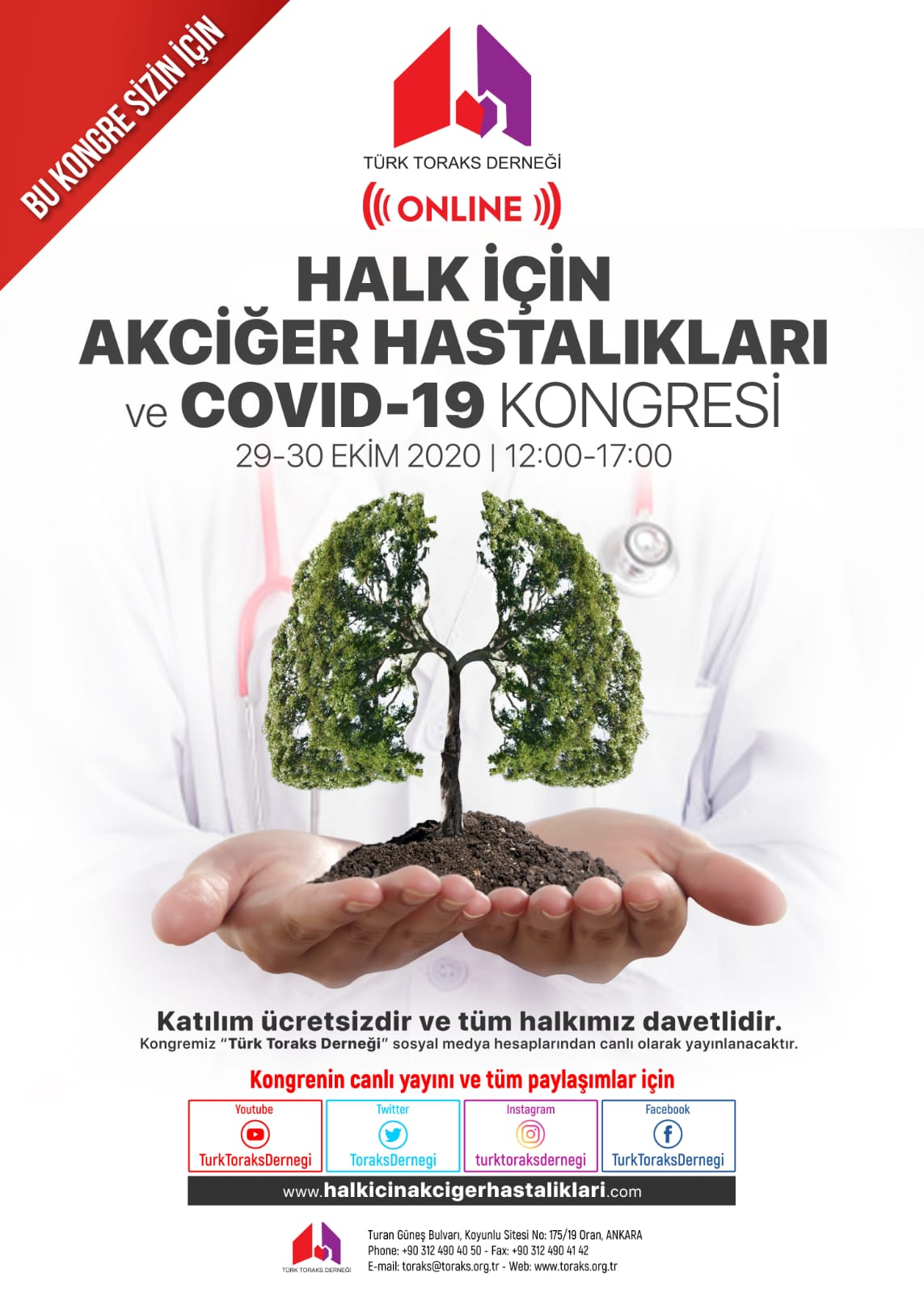 Kongre Başkanı Prof. Dr. Benan Müsellim, araştırmaların, sigara içenlerde covid enfeksiyonuna yakalanma riskinin hem daha yüksek olduğunu hem daha ağır geçtiğini gösterdiğini söyledi. Müsellim “Bu risk ne kadar yüksektir? Sigarayı nasıl bırakabiliriz? Virüs, hastaların büyük kısmında akciğerde zatürreye sebep olmaktadır. Bu zatürre her zaman tehlikeli midir? KOAH ve astım hastaları risk altında mıdır? Kullandıkları ilaçlar riski artırır mı? Dünya pandemiyi nasıl yenebilir? Akciğer filmi ve tomografi ile ne kadar ışın alıyoruz? Dezenfektanlar ve iç ortam havası ne kadar sağlıklı? Grip ve zatürre aşıları kime, ne zaman yapılmalıdır? Dünyadaki aşı çalışmaları hangi aşamadadır? Hava kirliliğinin Kovid-19 yayılımına etkisi olabilir mi? İşyerlerinde pandemi için hangi önlemleri almak gerekir? Bu ve daha birçok önemli konu için herkesi kongremizi izlemeye davet ediyoruz. Kongremizin tüm programına www.halkicinakcigerhastaliklari.com adresinden ulaşılabilir” dedi. İki gün sürecek kongre Türk Toraks Derneğinin sosyal medya hesaplarından (Youtube, Facebook, Twitter, Instagram) 29-30 Ekim'de saat 12.00-18.00 arasında canlı olarak yayınlanacak.