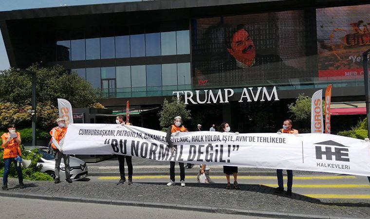 Halkevleri üyeleri Tayyip Erdoğan'ın açıkladığı "normalleşme" planının halkın sağlığını değil sermayenin kârlılığını gözettiğine dikkat çekip "Cumhurbaşkanı, patronlar, bakanlar güvende; Halk yolda, işte, AVM'de tehlikede! Bu normal değil!" diyerek Trump AVM önünde bir protesto düzenledi.