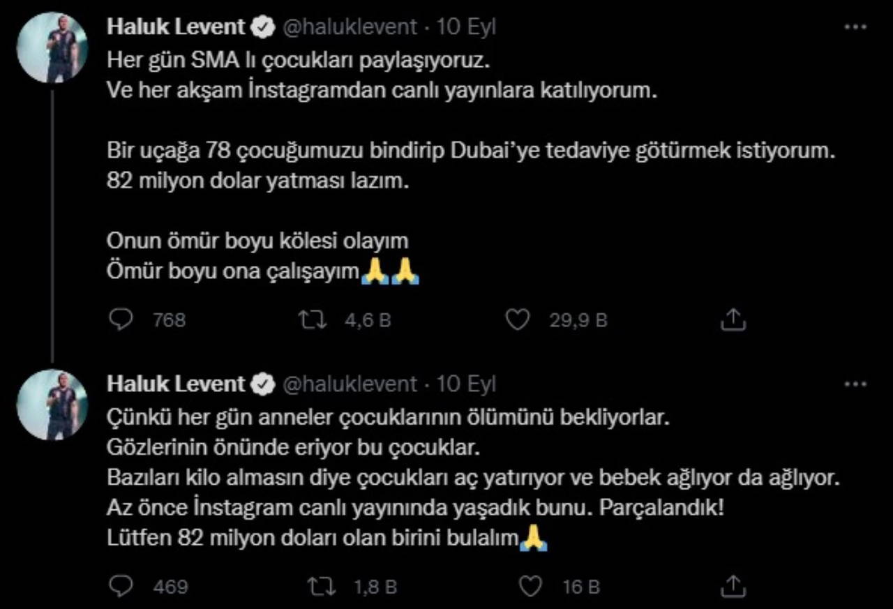 Kurucusu ve başkanı olduğu AHBAP Derneği'yle Türkiye'nin dört bir yanında yardıma koşan, toplumsal olaylara duyarlılığıyla ve yaptığı sosyal yardımlarla bilinen ünlü sanatçı Haluk Levent, bu sefer SMA’lı çocuklar için destek istedi.