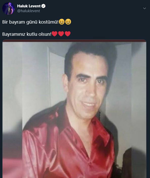 Haluk Levent, Twitter hesabından, "Bir bayram günü kostümü! Bayramınız kutlu olsun" ifadeleriyle hem Ramazan Bayramı'nı kutladı hem de geçmiş yıllara ait bir fotoğrafını paylaştı.