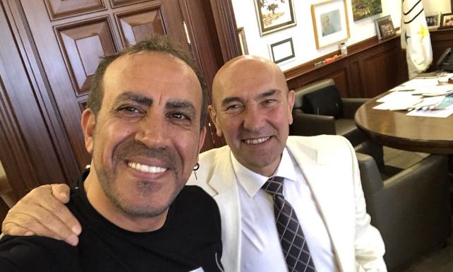 Sosyal sorumluluk faaliyetleri yürüten Anadolu Halk ve Barış Platformu (AHBAP) kurucusu sanatçı Haluk Levent, İzmir’de faytonların kaldırılmasının ardından Büyükşehir Belediye Başkanı Tunç Soyer’e ziyarette bulunup, teşekkür etti.