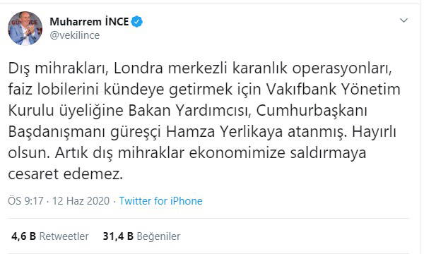 Ekonomi eğitimi bulunmayan eski güreşçi Hamza Yerlikaya'nın Vakıfbank yönetimine atanması liyakat tartışmalarına neden oldu.