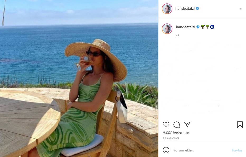 Oyuncu Hande Ataizi, sosyal medya hesabı Instagram'dan palmiye emojileriyle bir tatil pozu paylaştı. Fakat Ataizi'nin paylaştığı pozun, kısa süre içinde kendisine ait olmadığı fark edildi.