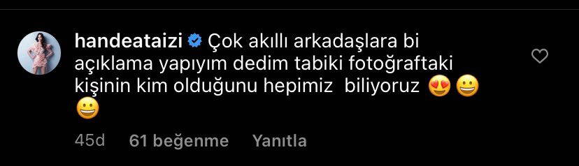 Gönderinin Ataizi'ye ait olmadığı anlayan sosyal medya kullanıcıları, ünlü oyuncuyu yorum yağmuruna tuttu. Ataizi, eleştirilerin ardından küçük bir açıklama yaptı.