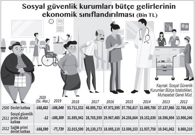 Torba yasalar ve borçlanma limitlerini sürekli artıran hükümet, iktisat kurallarını da iyiden iyiye bir kenara bırakmış durumda. Hazine ve Maliye Bakanlığı Muhasebat Genel Müdürlüğü Sosyal Güvenlik Bütçe İstatistikleri, Hazine’nin 2019 yılı ve 2020 Ocak-Mart döneminde malullük, yaşlılık ve ölüm sigortaları ile genel sağlık sigortası primi için ödemesi gereken devlet katkısını ödemediğini ortaya koydu.