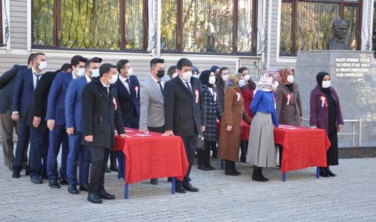 Kaymakamlık, haremselamlık yemin töreninin fotoğrafını, 24 Kasım Öğretmenler Günü töreni çerçevesinde sosyal medya hesabından paylaştı. Durum büyük tepki topladı.