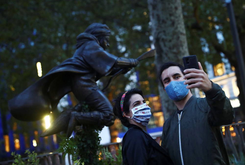 Yoğun ilgi gösterilen Hary Potter heykeli önünde selfie çektirme kuyruğu oluştu.