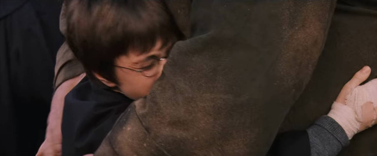 Genel olarak kasvetli olan sahnede Harry ve Hagrid sevgi dolu bir anı paylaşıyordu.