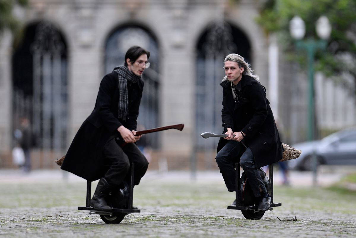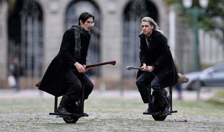 İngiliz yazar J.K Rowling’in ünlü eseri Harry Potter’dan ilham alan ikili, trafiğe kalmadan ilerlemenin mutluluğunu yaşıyor.
