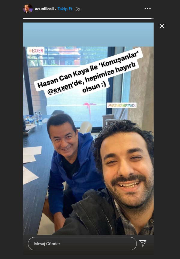 Instagram hesabında paylaşım yapan Acun Ilıcalı, komedyen Hasan Can Kaya’nın pandemi döneminde YouTube'da yayımlanmaya başlanan ve kısa sürede geniş bir izleyici kitlesine ulaşan programı "Konuşanlar"ın yeni dijital yayın platformu Exxen'e geçeceğini duyurdu.