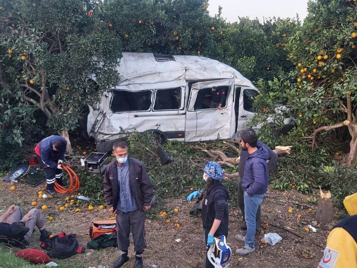 Alınan bilgiye göre, sürücüsü öğrenilemeyen, tarım işçilerini taşıyan 01 ACB 996 plakalı minibüs, Erzin-Osmaniye kara yolunda devrildi. Minibüste sıkışan 1 kişi, itfaiye ekiplerinin çalışmasıyla kurtarıldı. Kazada yaralanan 9 kişi 112 Acil Servis ekiplerince Erzin ve Osmaniye'deki hastanelere kaldırıldı.