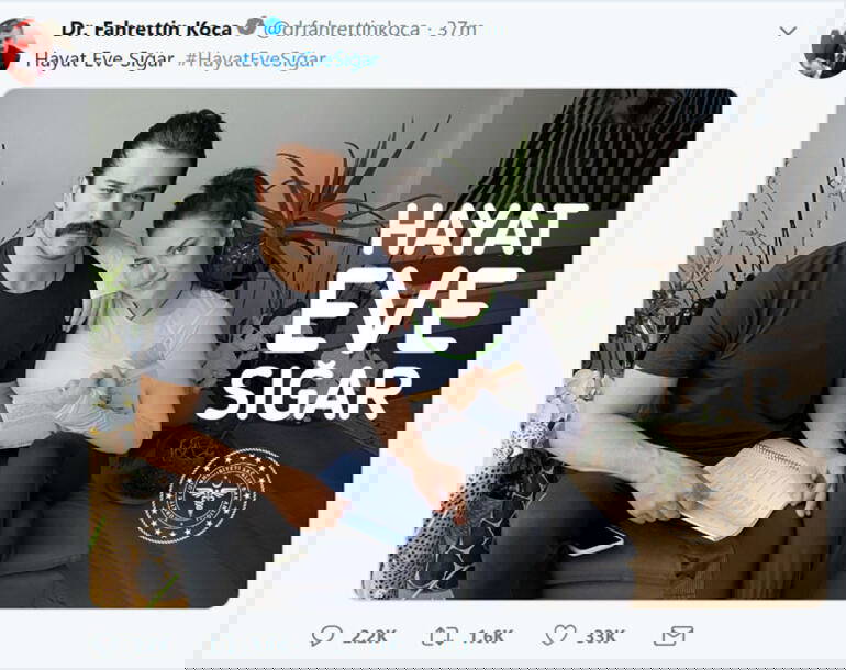 Sağlık Bakanı Fahrettin Koca, Twitter'dan yaptığı paylaşımda, Burak Özçivit-Fahriye Evcen çiftinin evde bulundukları sırada çektirdikleri fotoğrafa "Hayat eve sığar" etiketiyle yer vermişti. Bakan Koca, "Burak Özçivit ve Fahriye Evcen, 'Hayat eve sığar' diyor. Kampanyamıza verdikleri destek için kendilerine teşekkür ediyorum." ifadesini kullanmıştı.