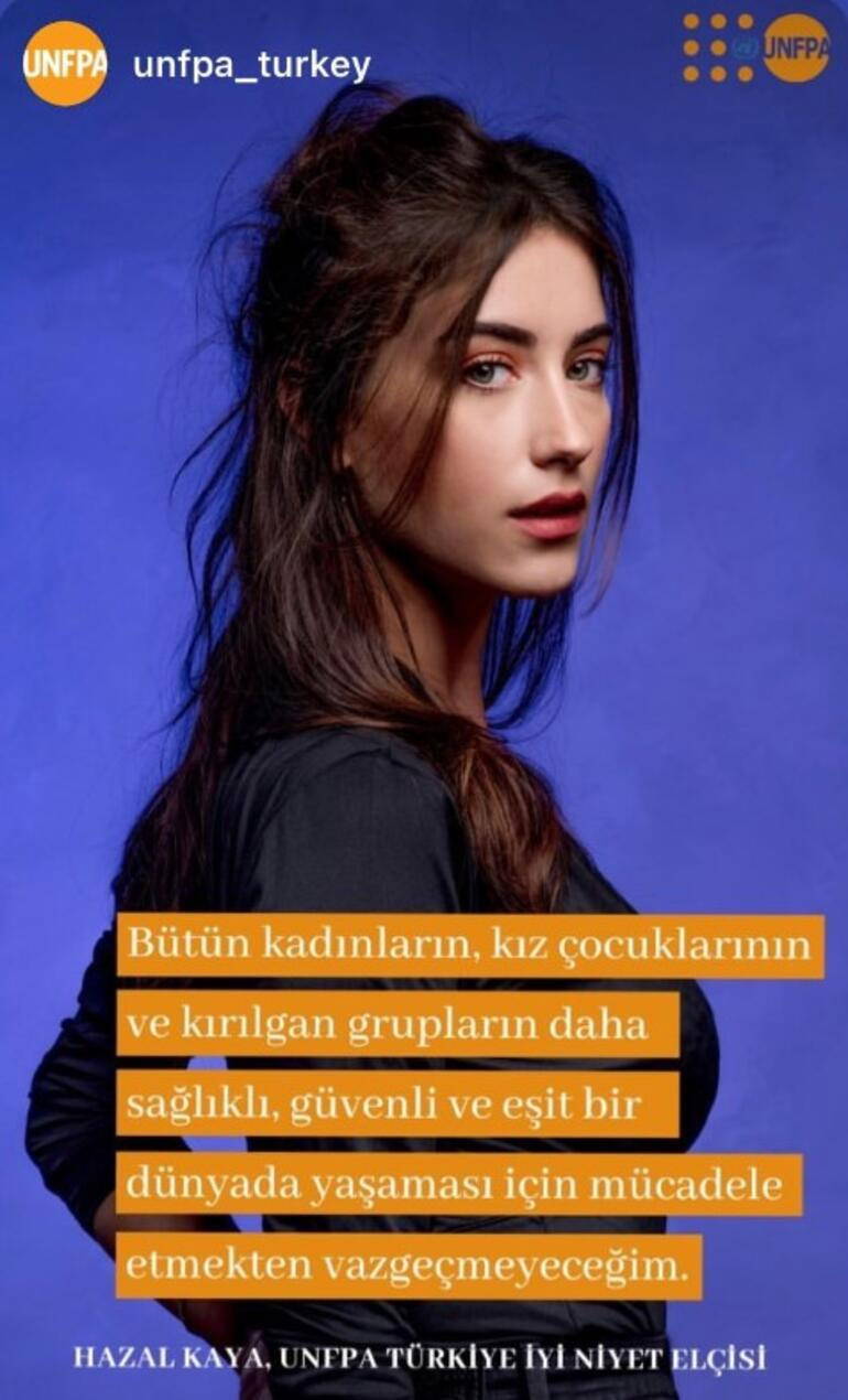 Oyuncu Hazal Kaya Birleşmiş Milletler Nüfus Fonu (UNFPA) Türkiye’nin iyi niyet elçisi oldu.