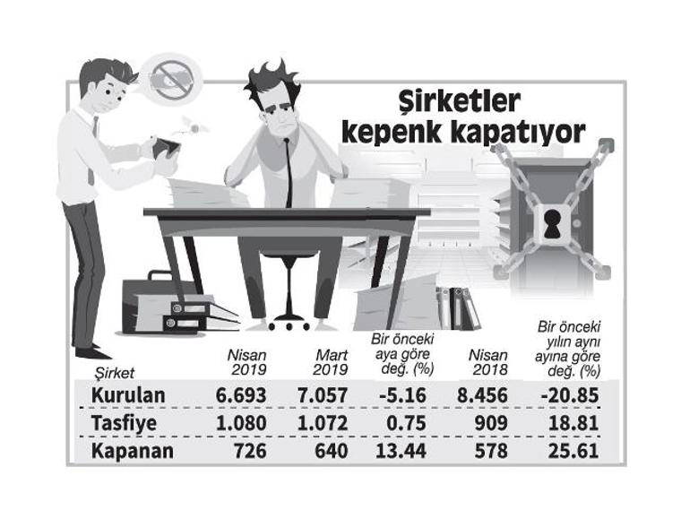 - Kapanan şirket sayısı nisanda 726, ocak-nisan döneminde 3 bin 918 oldu. Nisanda 6 bin 693 yeni şirket açılırken, ocak-nisanda bu rakam toplam 28 bin 722 oldu.