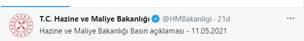 Hazine ve Maliye Bakanlığı'nın Twitter hesabından yapılan açıklamada şöyle denildi: