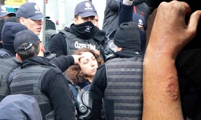 Kaldırımda oturmak isteyen milletvekilleri, Leyla Güven'in fotoğrafının bulunduğu pankartı açmaya çalıştı. Polislerin, pankartı almaya çalıştığı sırada HDP Diyarbakır Milletvekili Aydeniz, bir kadın polis memurunun kolunu ısırdı.