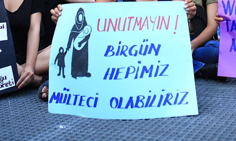HDP İstanbul İl Eşbaşkanı Esengül Demir ve birçok HDP’li kadının katıldığı eylemde konuşan HDP milletvekili Züleyha Gülüm, “Mültecilere yönelik ırkçı, cinsiyetçi söyleme karşı olduğumuz için buradayız. Kimse kendi isteğiyle göç etmez. Baskıdan, savaştan göç etmek zorunda kalırlar, gittikleri ülkede yaşam hakları, burada bulunma hakları, insanca yaşam hakları engellenemez. Mülteciler zorla geri gönderme politikalarını kabul etmiyoruz. İnsanca birlikte yasayabileceğimiz ortamlar istiyoruz. Tacize, tecavüze, her türlü baskıya maruz kaldıklarını biliyoruz. Özellikle mülteci kadınlar, sefalet içinde yaşıyor, çok kötü koşullarda yaşıyorlar. Biz bugün buradan ‘geri göndermelere son verilsin’ diyoruz. Özellikle kadın ve çocuk mültecilerin yanındayız” ifadelerini kullandı.