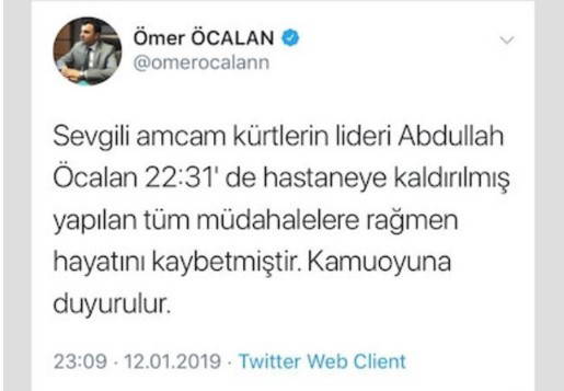 Terör örgütü PKK elebaşı Abdullah Öcalan'ın öldüğüne ilişkin yapılan paylaşım sosyal medyada gündem oldu.
