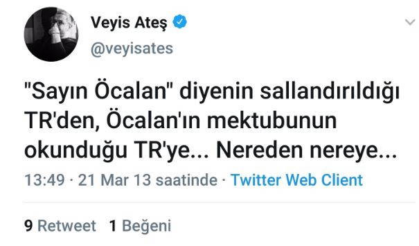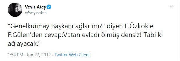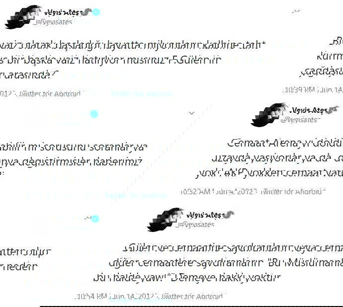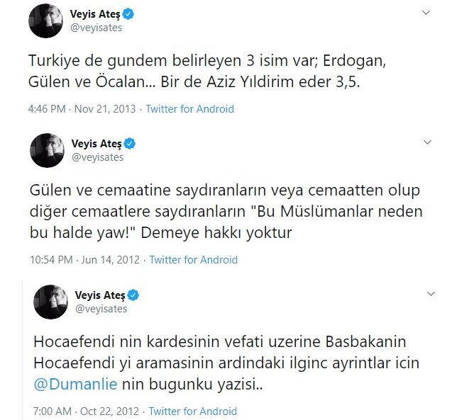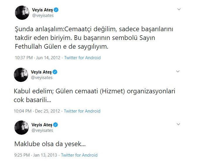 Açıklamanın ardından, sosyal medya kullanıcıları, Veyis Ateş'e geçmişte paylaştığı "Diyarbakır'da Abdullah Öcalan Caddesi", Fethullah Gülen için sarf ettiği "Bir vaiz olarak başladığı hayatta milyonların kalbine taht kurmuş bir başka vaiz hatırlıyor musunuz F.Gülen'in çağdaşları arasında" tweetlerini hatırlattı.
